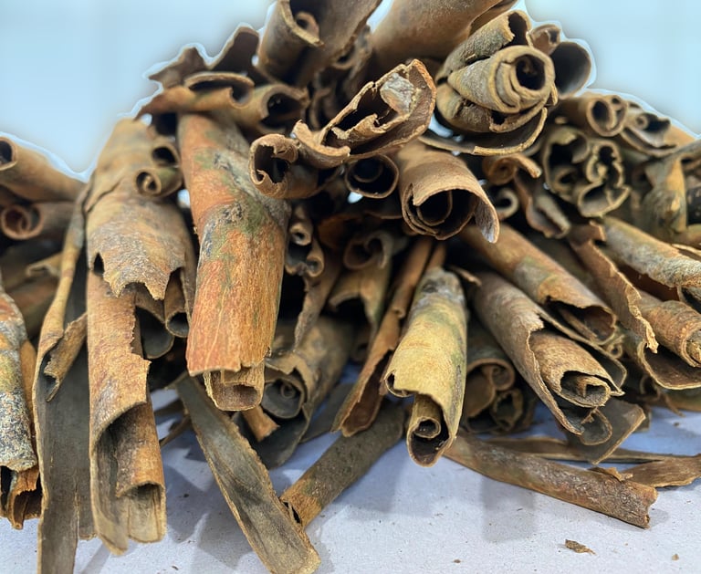 Broken cinnamon refers to cinnamon sticks that are fragmented into smaller pieces, often due to handling or natural breakage. These pieces may vary in size and texture, with lower-grade broken cinnamon typically being more irregular and less visually appealing than whole sticks. Broken cinnamon is commonly used for ground cinnamon or in recipes where appearance is less important.